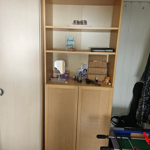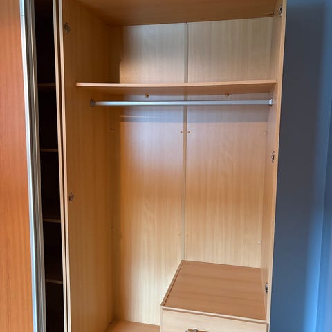 Er vel egentlig et kontorskap, men vi har brukt det til kleskap :) 3 hyller.