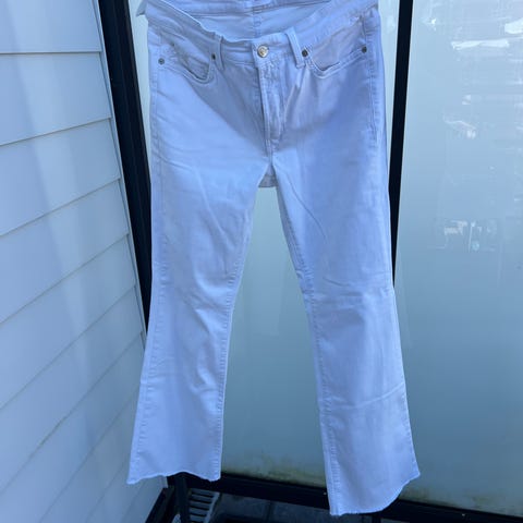 Selger mine nesten ubrukte hvite dongeribukser fra det svenske kvalitetsmerket Newhouse. Buksen har et tidløst snitt med rette ben og en flatterende passform.