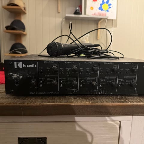 Lydanlegg med mikser og tilhørende høyttalerutstyr. Pakken inneholder en flerkanals mikser med flere innganger og reguleringer, samt diverse lydkomponenter som høyttalere, subwoofer og kabler. Utstyret er egnet for bruk i for eksempel forsamlingslokaler, møterom eller mindre arrangementer der det er behov for forsterket lyd. Nærmere spesifikasjoner som effekt, antall kanaler og tilkoblingsmuligheter fremgår av merkingen på enhetene og kan kontrolleres ved behov.