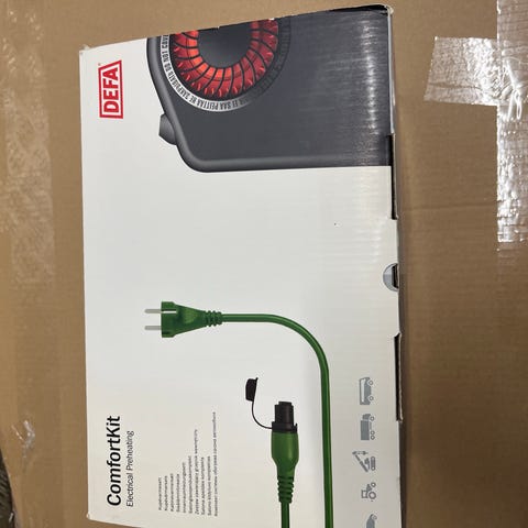 Defa 1900 GPS Link bilvarmer med GPS-modul for kjøretøy. Systemet inkluderer kabler, styringsenhet og dokumentasjon som vist på bildene. GPS Link-funksjonen gjør det mulig å koble bilvarmeren til GPS-basert enhet for fjernstyring og overvåkning. Passer for montering i bil med kompatibelt Defa-varmesystem. Spesifikke tekniske data og kompatibilitet følger av medfølgende brukerveiledninger.