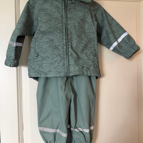Selger samlet sett med skalljakke og skallbukse fra Polarn o. Pyret i størrelse 86.
