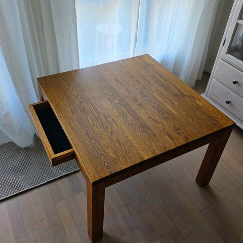 Bordet er brukt og har noen merker/slitasje (se bilder), men fungerer helt fint. Kan med fordel friskes opp med litt lakk/maling hvis ønskelig.