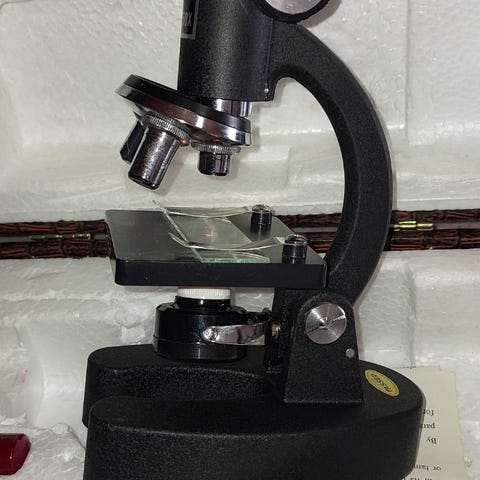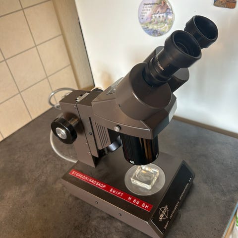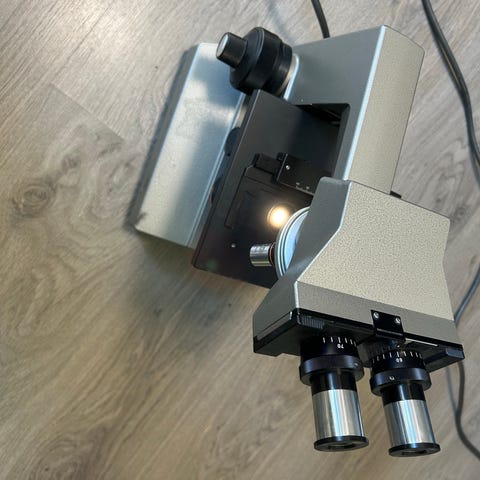 Et fint mikroskop for samlere, hobbybiologer og skolelaboratorier. Ikke skolemodell — er et ekte forskningsinstrument