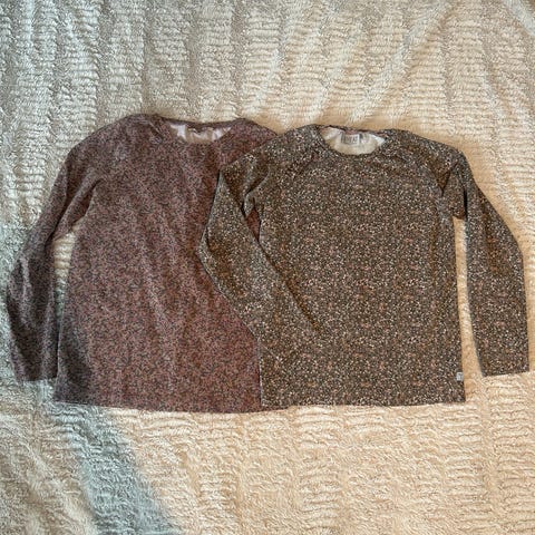 Pent brukte ullgensere fra Name it i str 122/128. Ingen flekker, men den lilla har fått en rift i blondekanten nederst.