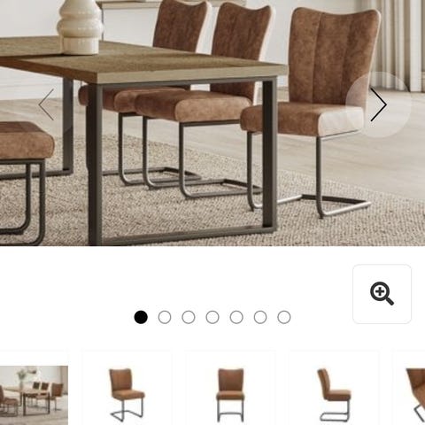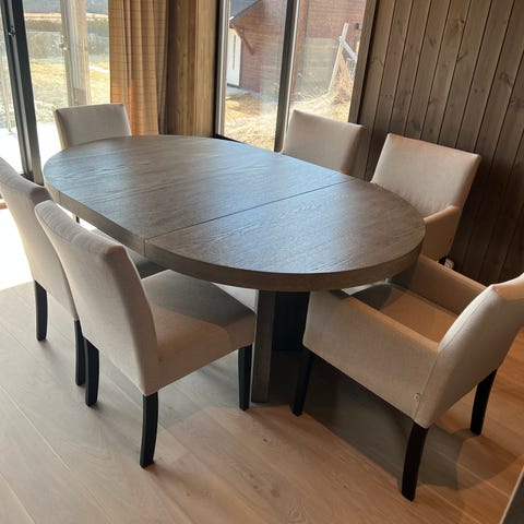 6 stk Zara spisestoler uten arm. tekstil Bay light brown 444/13 med sorte eikben
