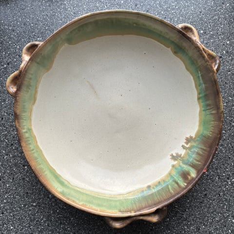 Bolle/fat i keramikk ønskes solgt. Bollen/Fatet måler 19 cm og ca 5 cm høy.