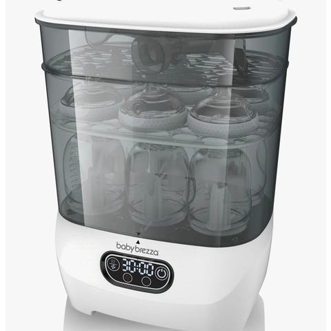 Elektrisk enhet for sterilisering og tørking av tåteflasker, smokker og annet babyutstyr. Har lukket kammer med gjennomsiktig lokk og plass til flere flasker og tilbehør samtidig. Betjenes via berøringsknapper på fronten med forhåndsinnstilte programmer for sterilisering og tørk. Egnet for bruk på kjøkkenbenk med standard strømtilkobling.
