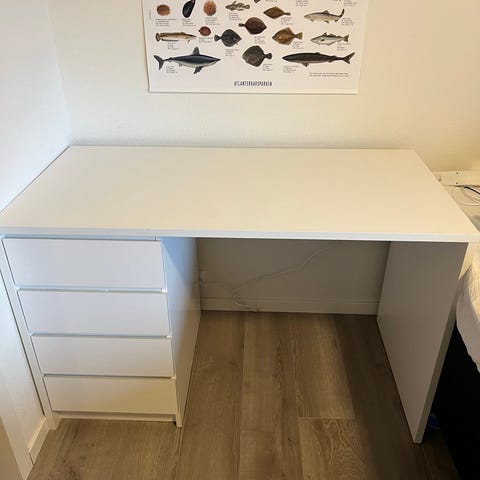 Selger brukt skrivebord fra jysk med tre skuffer.