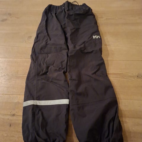 Helly Hansen barnebukse i polyester, unisex, i størrelse 140. Buksen er blå med kontrastdetaljer. Egnet som ytterbukse til barn i ca. størrelse 140, for bruk i hverdagen og utendørsaktiviteter. Laget i polyesterstoff som er tilpasset aktiv bruk. Buksen har rette ben og elastisk linning bak for bedre passform. Detaljer og slitasje fremgår av bildene. Lappet et lite hull på det ene kneet