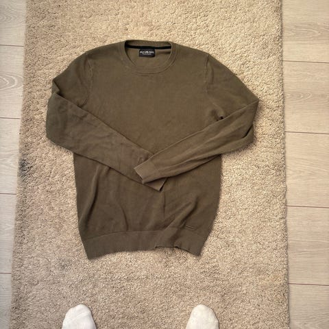 KappAhl genser for herre i størrelse S. Genseren er blå og laget av bomull. Den har rund hals og lange ermer. Passer til hverdagsbruk og kan brukes alene eller under jakke eller yttertøy.