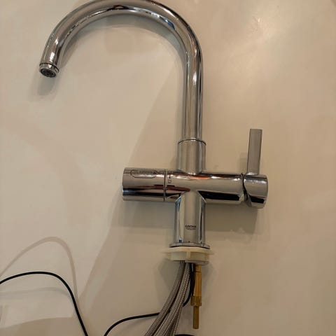 Grohe kjøkkenbatteri i krom med ettgreps hendel. Blandebatteriet har høy, buet tut som gir god plass i vasken. Det er beregnet for veggmontering med to tilkoblingspunkter for varmt og kaldt vann. Overflaten er i blank krom, og armaturet passer til bruk på kjøkken eller vaskerom der det er behov for et veggmontert blandebatteri med høy tut.
