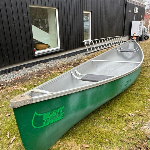 Kano i glassfiber. Malt utvendig for 6 år siden med skikkelig 2 komponent båtmaling.
