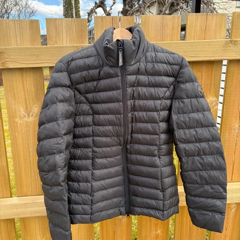 Tracker dunjakke i navy / blå. Tror disse jakkene er i unisex, og størrelsen på denne er XS. Brukt av meg som vanligvis er str S. Pent brukt uten skader.