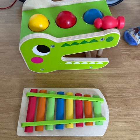 Gir bort noen treleker. De er godt brukt, men mye bruk igjen. På 2 av lekene har en trebit falt av, men kan nok fint fikses med litt lim.