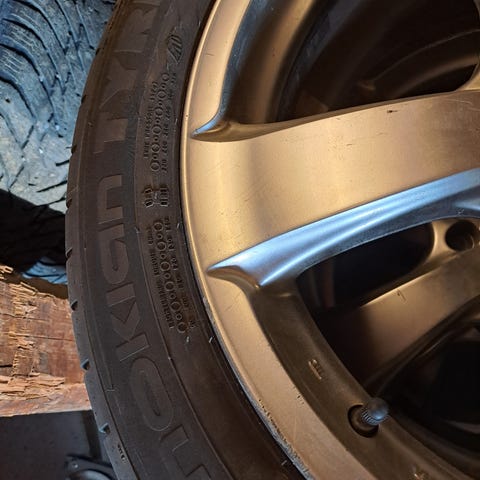 Felgene og dekkene selges samlet. Å de blir solgt i den tilstanden de er.