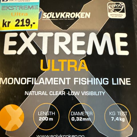 Sølvkroken Ultra Fiskesene i fluorocarbonmateriale, 0,16 mm tykkelse og 50 meter lengde. Egnet for fiske med høy styrke og lav synlighet under vann.