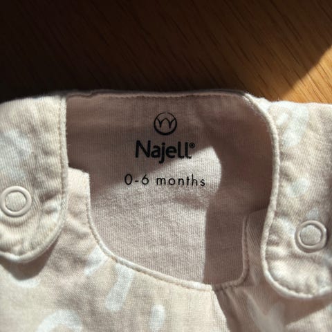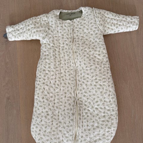 Den beige er størrelse 50, den blå er størrelse 2-4 måneder. Nesten ikke brukt.