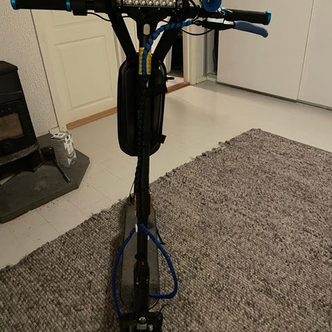 Sparkesykkelen fungerer som den skal, men har litt normal slitasje og bruksmerker. Som du ser på bildene er den litt møkkete akkurat nå etter noen turer, men med en liten vask blir den nok veldig fin igjen!
