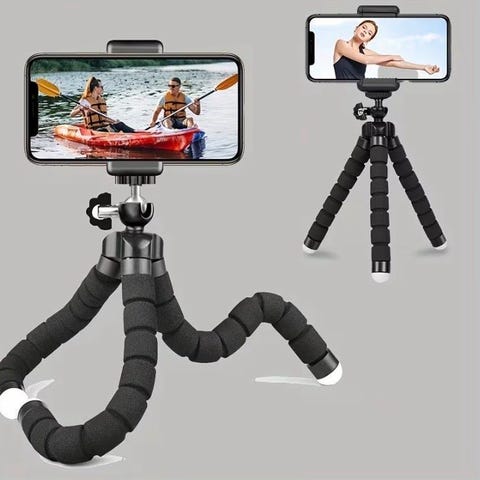 Dette er en justerbar holder for telefon eller nettbrett med bordfeste, ofte brukt av streamere og musikere.