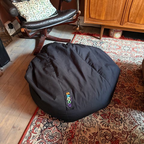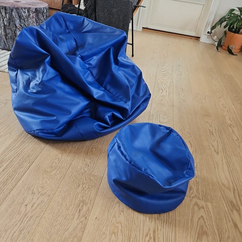 Selger to saccosekker. En svart og en mørke blå. Er noen flekker. (Ikke prøvd iherdig å få de av)