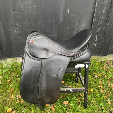 Meget pent brukt bomløs sal med utskiftbar fremvissel selges rimelig. Salen er av dressurmodell med lange kapper og veldig god støtte. Passer de aller fleste hester og ryttere. Åpen for bud.