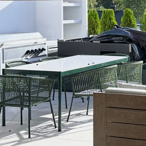 To år gammelt IKEA Segerön spisebord selges. Meget solid bord med grønn ramme i sinkbelagt stål og topplate i aluminium.