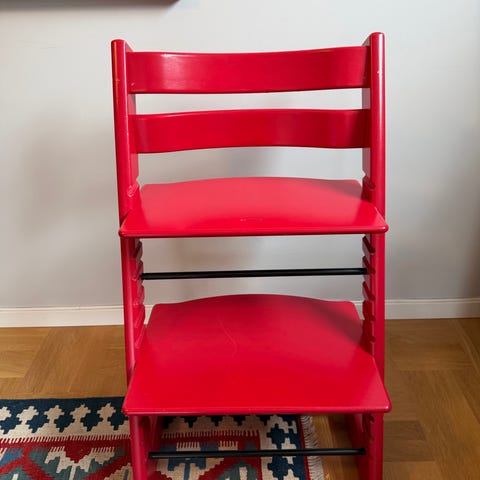 Stokke Tripp Trapp stol i blå 😊 vanlige bruksmerker, har forsøkt å ta bilde av det jeg fant! Ellers god som gull 😁 må hentes