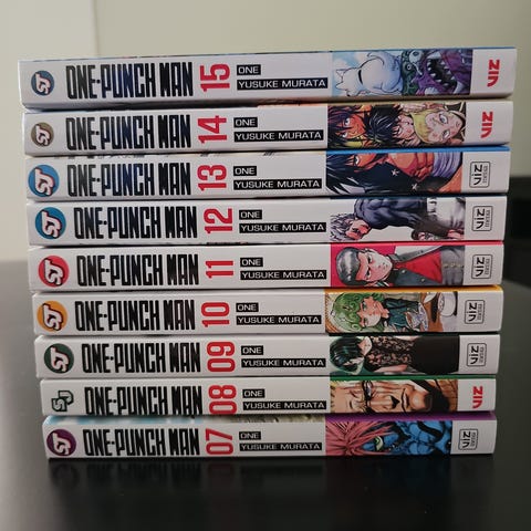 Japansk tegneserie i pocketformat med illustrasjoner i svart-hvitt. Serien følger superhelten Saitama og andre karakterer i et actionpreget univers.