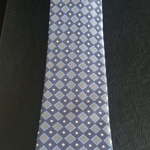 Hugo Boss slips for herre i lilla fargetone med diskret geometrisk mønster. Slipsen er merket "Made in Italy" og har klassisk fasong. Passer til formelle anledninger og kontorbruk, og kan kombineres med både dress og skjorte i nøytrale farger.
