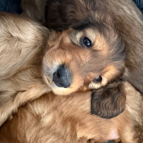 Hun røyter ikke jevnt hele året, men mer ved sesongskifter. Når hun først røyter, er det mer som myke “bomullsdotter” enn klassiske hundehår.