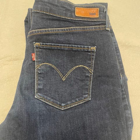 Levi's Mile High Super Skinny damejeans i blå denim. Modellen er super skinny med høy midje. Størrelse M med livvidde W29. Klassisk femlommersmodell i denim med beltehemper og glidelåsgylf. Passer til hverdagsbruk og kan kombineres med ulike topper og sko for både uformelle og mer pyntede antrekk.