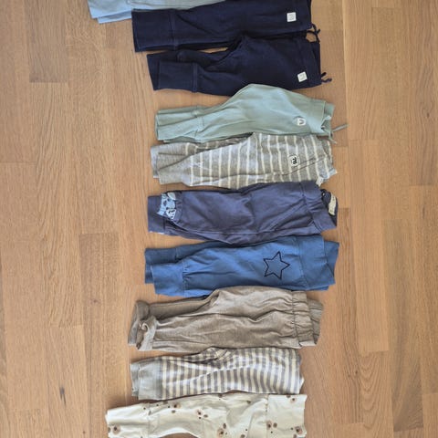 8 stk bukser. Str. 98–194. Flere gode bukser, men de kommer fra en knesliter så merk: ALLE disse har hull på knærne. De må sys, lappes eller som vi pleier å gjøre, klippe de til shorts. 👌💛