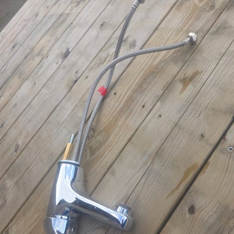 Kjøkkenarmatur med ettgreps hendel og lang tut. Armaturet er i kromfarget metall og leveres med tilkoblingsslanger. Passer til montering i kjøkkenbenk eller vask der det er behov for et enkelt ettgreps blandebatteri for varmt og kaldt vann.