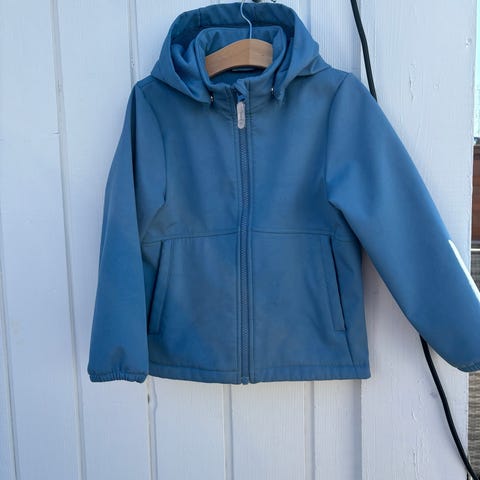 Mørk blå med rosa fleecefor. Godt brukt, men fortsatt hel og pen.