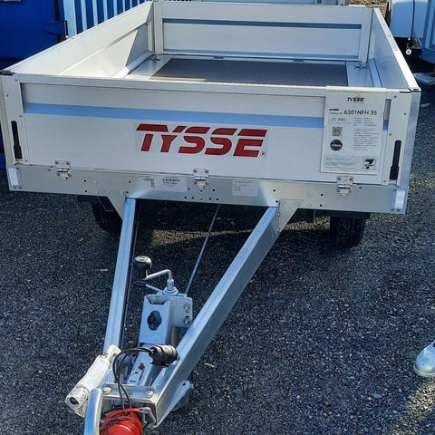 Tysse tilhenger med brems 2015 mod åpen plan grå 1300kg ny i dag ca 25.000kr