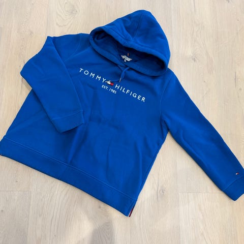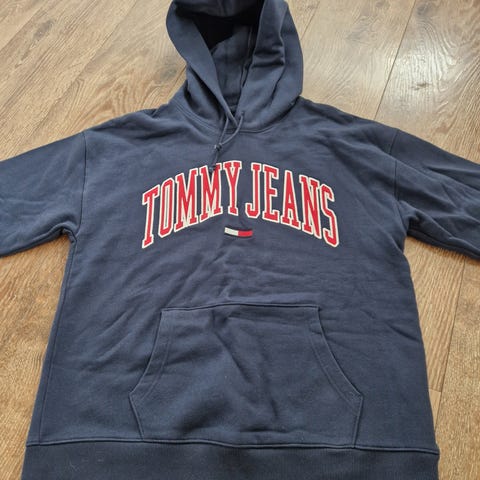 Tommy Hilfiger Vintage Fit hettejakke for dame i størrelse L. Hettegenseren er grå og har glidelås i front, justerbar hette med snøring og lommer foran. Passer til hverdagsbruk og fritid. Materialet fremstår som mykt og behagelig, egnet til bruk året rundt avhengig av lag-på-lag.
