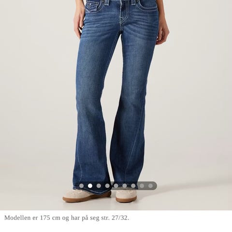 True Religion jeans for dame i størrelse S med livvidde W27 også er de sydd opp til Lengde 30. Buksen er laget i blå denim. Passer til hverdagsbruk og kan kombineres med ulike topper og sko for både avslappede og mer pyntede antrekk.