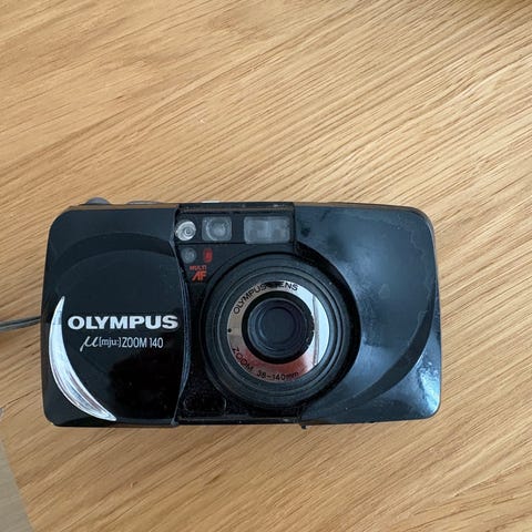 Olympus Accura Zoom 105 analogt kompaktkamera i svart. Kameraet bruker 35 mm film og har innebygd zoomobjektiv med motorisert utskyvning. På toppen finnes LCD-skjerm for innstillinger, samt knapper for blant annet blits og zoom (W/T). Kameraet har innebygd blits og håndrem festet i siden for enklere håndtering. Passer til generell analog fotografering med 35 mm filmruller.