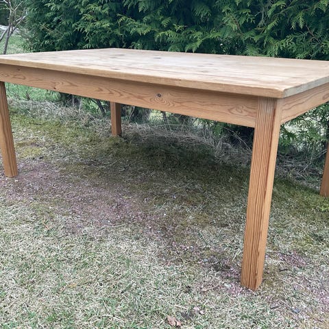 Lakk på bordplate er fjernet og platen er pusset.
