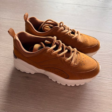 Jean Paul sneakers joggesko i størrelse 36. Modellen er i en korallfarge med hvite lisser og hvit såle. Overdelen er i tekstil, med tekstilfôr og innersåle. Passer til hverdagsbruk og fritid. Nøytral modell som kan brukes av ulike aldre. Brukt 2 ganger til pent.