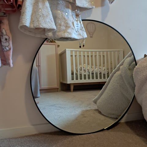 Rusta buet speil med svart ramme