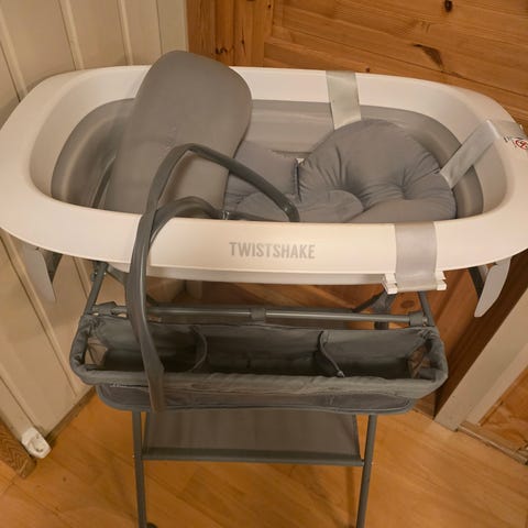 Twistshake badebalje med stativ, slange, nyfødtinnlegg og badeleker selges. Stativ er kun brukt en gang, badebaljen er i pen stand. Obs. Twistshake øse medfølger ikke. Må hentes.