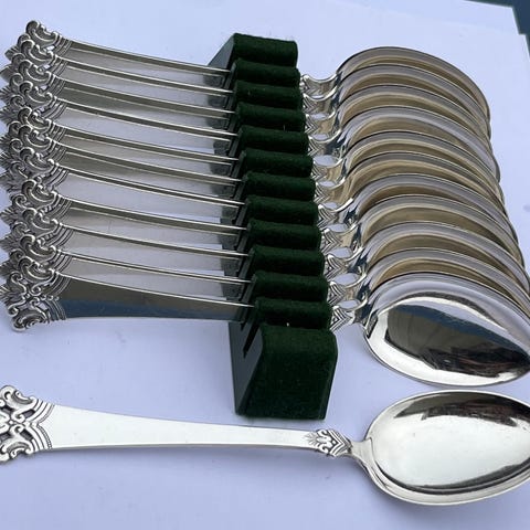 6 stk. Anitra mokkaskjeer i 830S sølv. 9,8 cm. Pent brukt, ingen bulker eller graveringer. Kr 200 pr stk. Selges samlet. Kan leveres lokalt eller sendes.