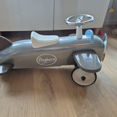 Dette er en Baghera Speedster Plane gåbil i metall.