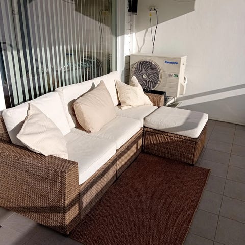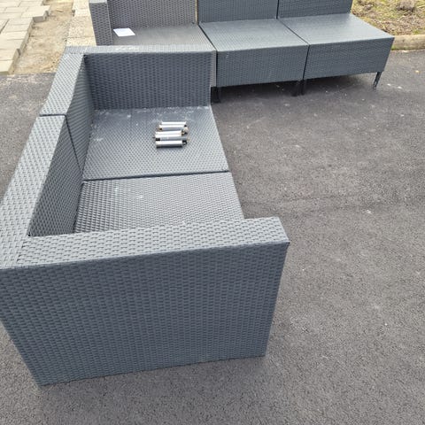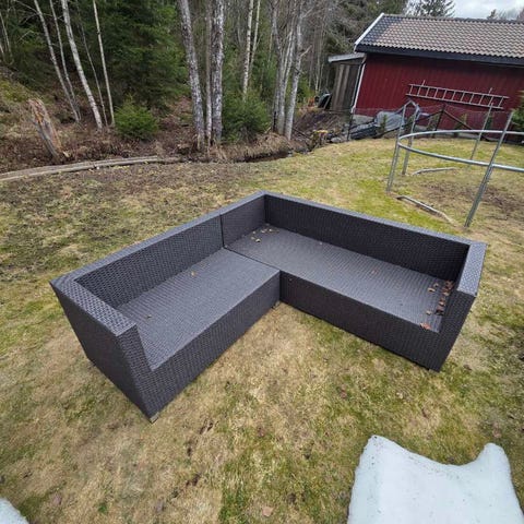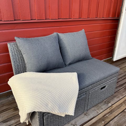 Utesofa kjøpt på Granit. Stått ute på balkong i 3-4 år så bærer litt preg av det.