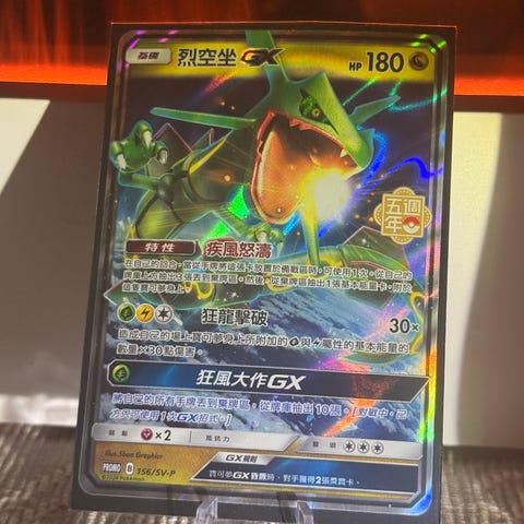 Fikk denne kinesiske Rayquazaen fra en bekjent, men samler ikke på så mye enn bare engelske kort. Kortet er også dobbelt sleevet og kan legges i Top-loader om det ønskes