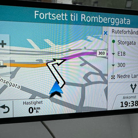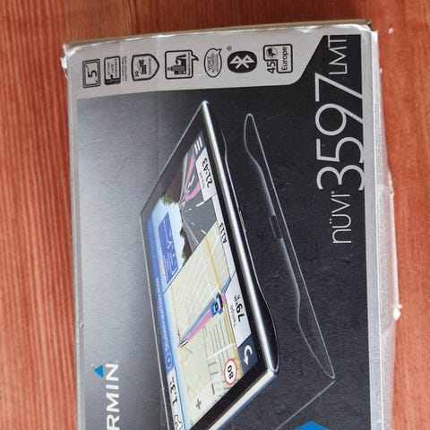 Pakken på bildene viser selve GPS-enheten, bil-lader til sigarettenneruttak og sugekoppfeste til frontruten. Enheten har visning av kjørebaner, fartsgrenser og interessepunkter som campingplasser og servicesteder langs ruten. Passer for montering i bil, bobil eller campingvogn der man ønsker dedikert navigasjonsutstyr.