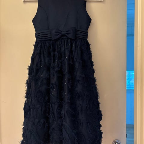 Selger en vakker kjole i str. 7 år. Kjolen er kun brukt 2 ganger og fremstår som ny. Hbo 400kr. Porto kommer i tillegg.