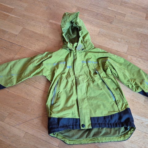 Skalljakke fra Helly Hansen i lyseblå med gule detaljer, strl. 116