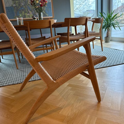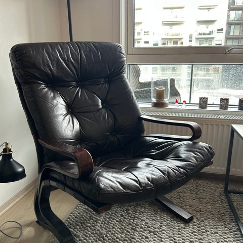 Fast og fin og veldig komfortabel å sitte i. Rein og fast i flettet. Små bruksspor. Se bilder.